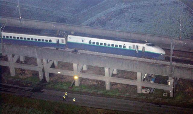 地震による上越新幹線の脱線(提供:朝日新聞社)