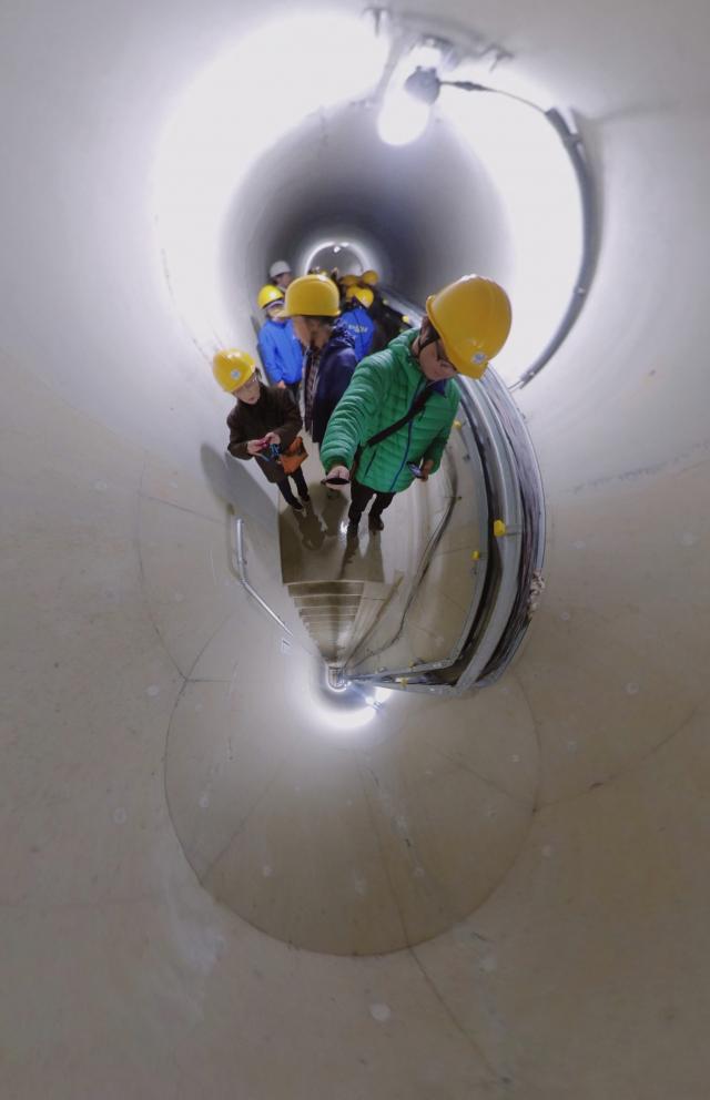令和1年12月に完成しました大分川ダム(ななせダム)工事中の2月見学会にて監査廊最下部へ一直線に降りる階段を全天球カメラで撮影しました。