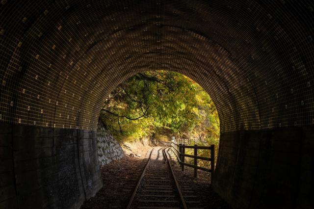 日本初の中空重力式コンクリートダムの井川ダムや、井川発電所を眺めながら、50年以上前に貨物列車が走っていた廃線跡を楽しめる散歩道です。