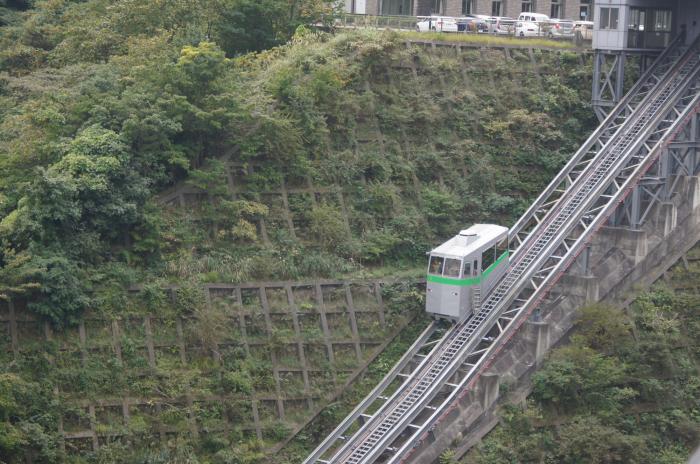 宮ヶ瀬ダムインクラインは、ダムの維持管理のため堤体外部を点検する施設として、工事中に活躍したダンプトラック搭載型インクラインの一部を活用し、設置された昇降設備です。